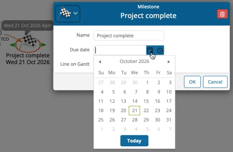 When entering a milestone due date, the calendar now defaults to the actual date and time when the milestone is achieved in the schedule.