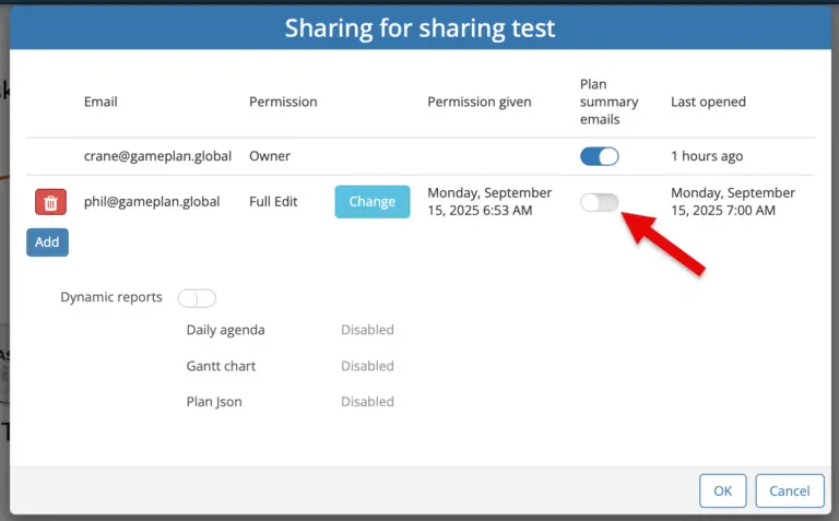 When sharing a plan, you can choose whether each person also receives the summary email. (By default, this is turned off.)
