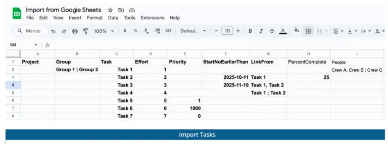 Other enhancements include easier spreadsheet imports, horizontal scrolling in Gantt chart columns, quick link editing, and Gantt PDF lookaheads.