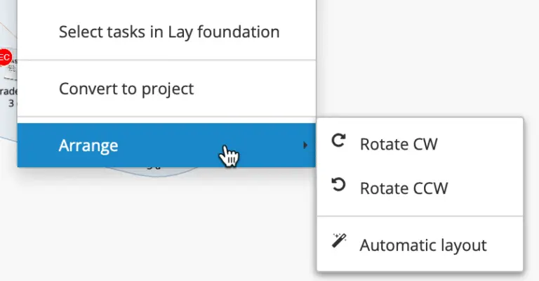 Use the new Arrange submenu to apply Automatic Layout, or to rotate groups and tasks 90 degrees clockwise or counterclockwise.