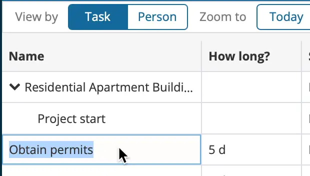 Inline Gantt Chart Editing